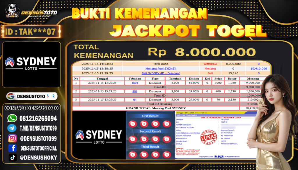 Fakta saja saat ini begitu aman dan terpercaya, DENSUS TOTO dapat dilunasi full kemenangan dapat anda temukan. Anda juga dapat memainkan semua pasaran yang saat ini kami sedaikan seperti pasaran judi togel online terlengkap yang kami siapkan dengan gunakan 1 akun saja.